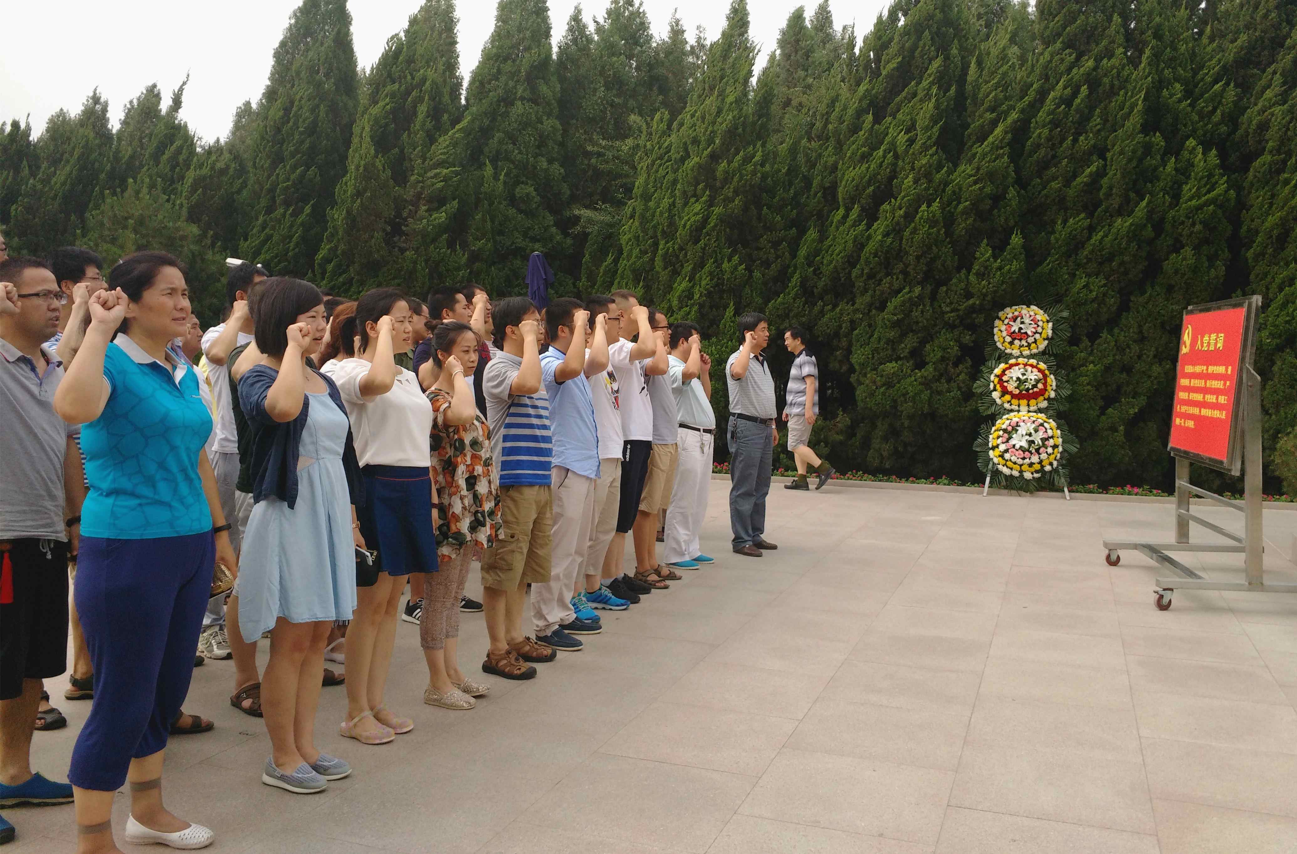 達(dá)到習(xí)仲勛陵園后,寶光固封極柱事業(yè)部全體黨員,帶著無比崇敬的心情,列隊(duì)來到塑像前,莊嚴(yán)舉起右手,重溫了入黨誓詞,向革命先輩鞠躬敬禮,并在習(xí)仲勛雕像前合影紀(jì)念。
