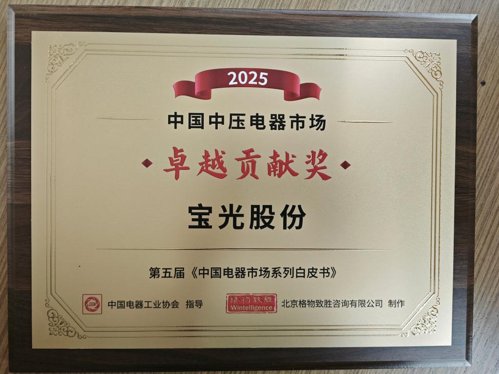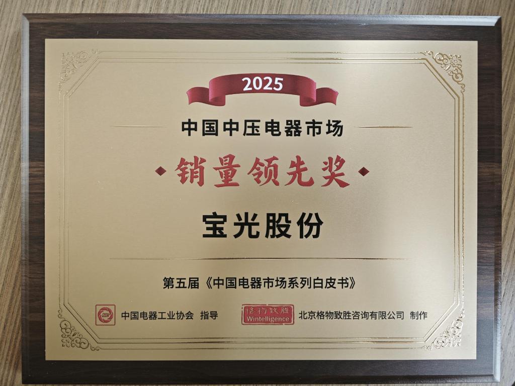 近日,由中國電器工業(yè)協(xié)會指導(dǎo),中電協(xié)理事單位主辦的《2025年中國電器市場系列白皮書》發(fā)布會在上海隆重舉行。會議表彰在市場占有率、增長率和產(chǎn)品創(chuàng)新等方面取得成績的優(yōu)秀電器企業(yè),寶光股份應(yīng)邀參會,榮獲2025年度中國中壓電器市場“卓越貢獻獎”和“銷量領(lǐng)先獎”。